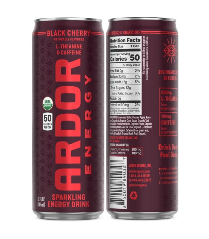 Black Cherry Sparkling Energy Drink by Ardor Energy delivers a refreshing burst of clean energy with a smooth, fruit-forward taste. Crafted with real fruit juice and natural ingredients, this lightly sparkling beverage offers a balanced blend of caffeine and L-theanine to support focus and sustained energy throughout your day.