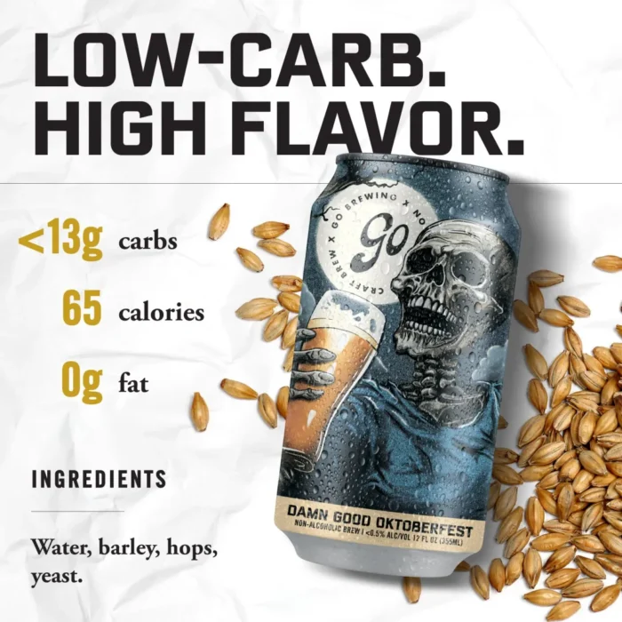 About Damn Good Oktoberfest – Hops: Hallertau Mittelfrüh / Malt: Barley / Profile: Malty Sweetness > Calories: 65 / Carbs: <13g / ABV: 0.47%