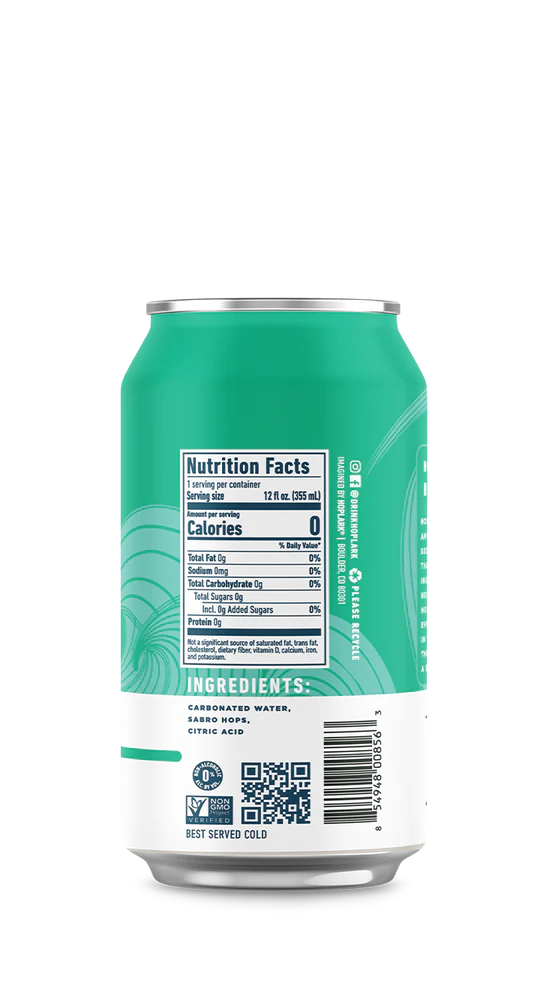- Specialty: Sparkling Hop Water, Zero Sugar, Zero Calorie, Non-Alcoholic Beverage
