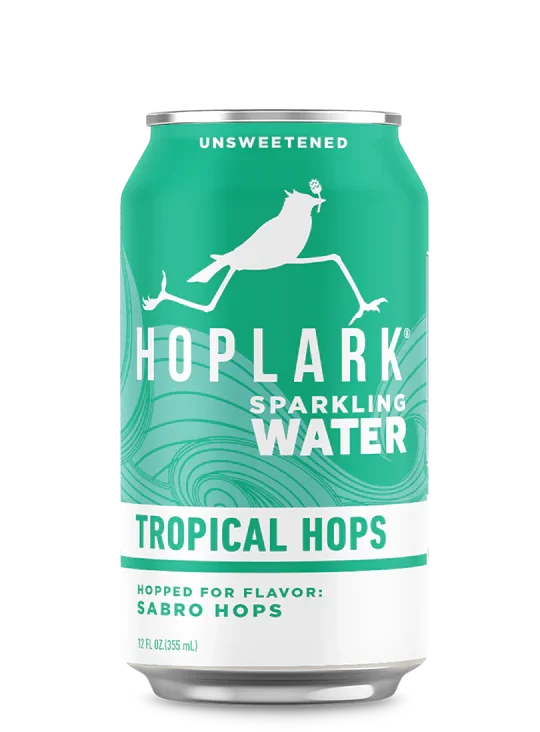 Hoplark Water Tropical Hops Sparkling Hop Water is a crisp and refreshing beverage crafted with carbonated water and Sabro hops. It delivers smooth tropical aromas with light citrus and subtle coconut-like notes, creating a clean and flavorful hydration experience.