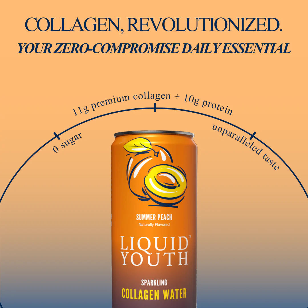 Glow from within with Liquid Youth Sparkling Collagen Water in Summer Peach, a refreshing way to support your daily beauty and wellness routine. Designed for convenience and consistency, it delivers functional nutrition in a light, sparkling format that feels more like a treat than a supplement.