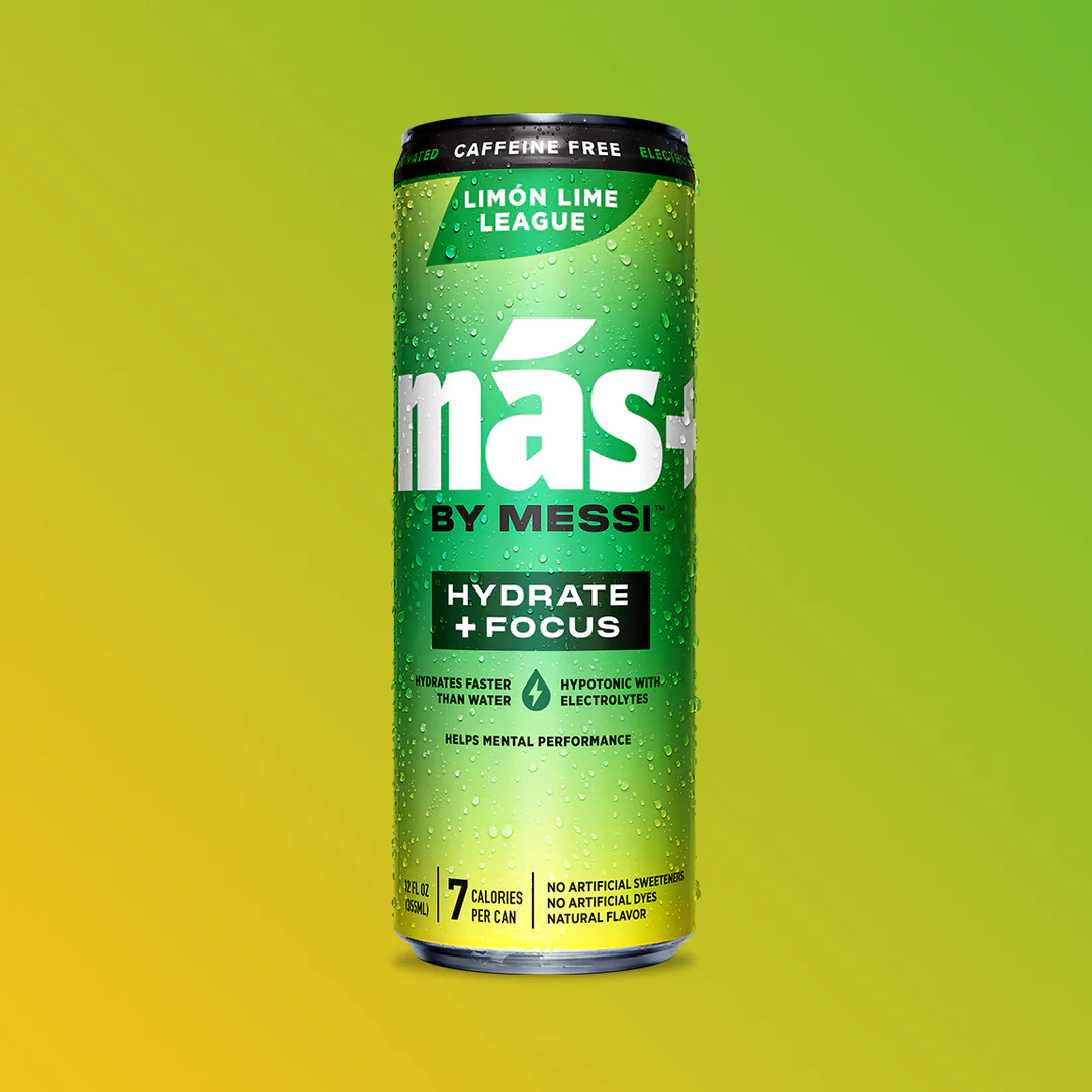 Más+ by Messi Limón Lime League Functional Hydration Drink offers a crisp citrus profile inspired by fresh lemons and vibrant green limes. This refreshing beverage combines sweet and tart citrus notes with smooth hydration support, perfect for everyday refreshment, social moments, or light activity recovery.