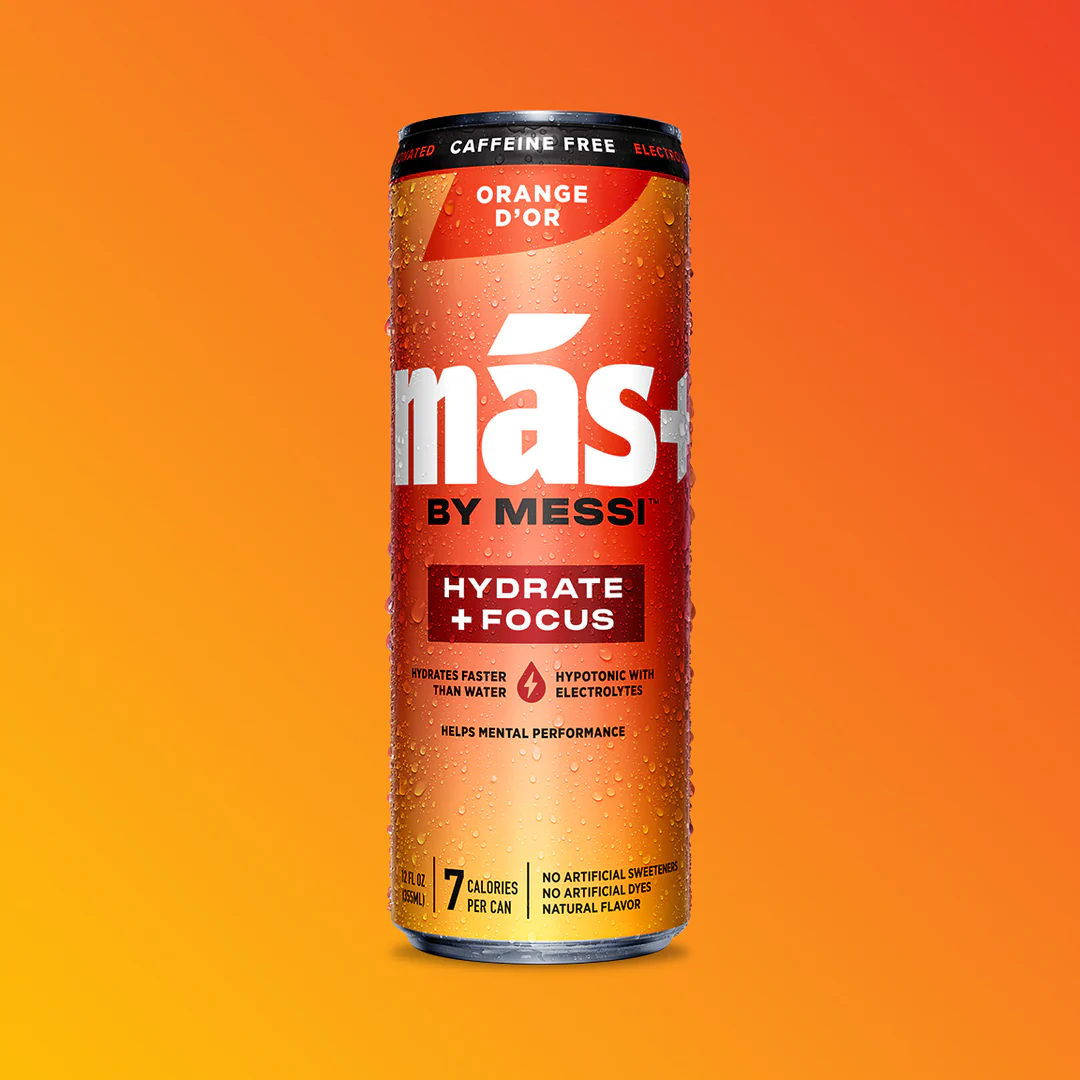 Más+ by Messi Orange D’Or Functional Hydration Drink brings a bright, juicy orange flavor with a refreshing, smooth finish. Designed to combine bold citrus taste with targeted hydration support, this beverage offers a revitalizing alternative to traditional sugary drinks.