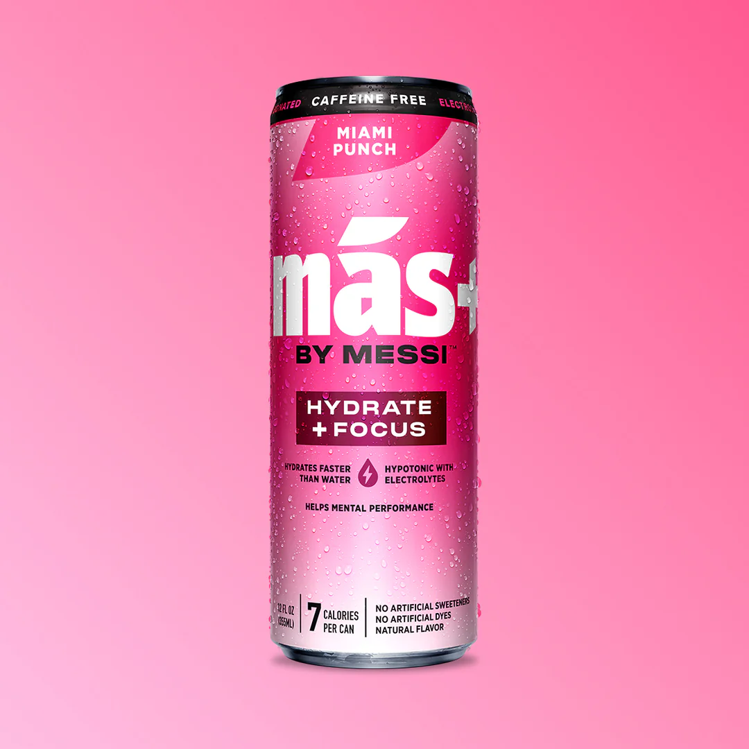Más+ by Messi Miami Punch Functional Hydration Drink delivers a vibrant tropical fruit punch experience with juicy pineapple notes and a balanced sweetness that feels crisp and refreshing. Inspired by the city of Miami and the champion spirit of Lionel Messi, this drink pairs bold fruit flavor with a clean, light taste that’s perfect for staying refreshed throughout the day.