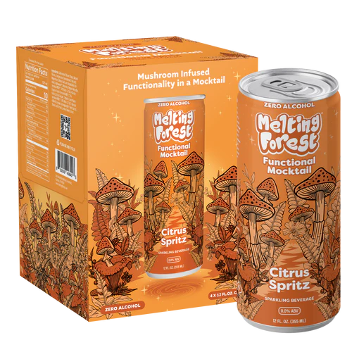 Melting Forest Aperol Spritz Mushroom Mocktail Drink is a sparkling, alcohol-free aperitif-style beverage inspired by the classic Italian cocktail. It delivers a vibrant citrus spritz with a sophisticated flavor, perfect for mindful sipping without alcohol. Each can contains just 10 calories and is crafted for those seeking a refreshing and modern alternative to traditional drinks.