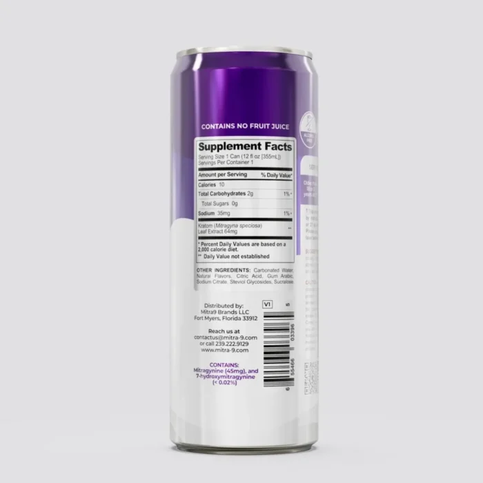 - Each 12 oz can contains ~ 45 mg mitragynine (a kratom alkaloid)