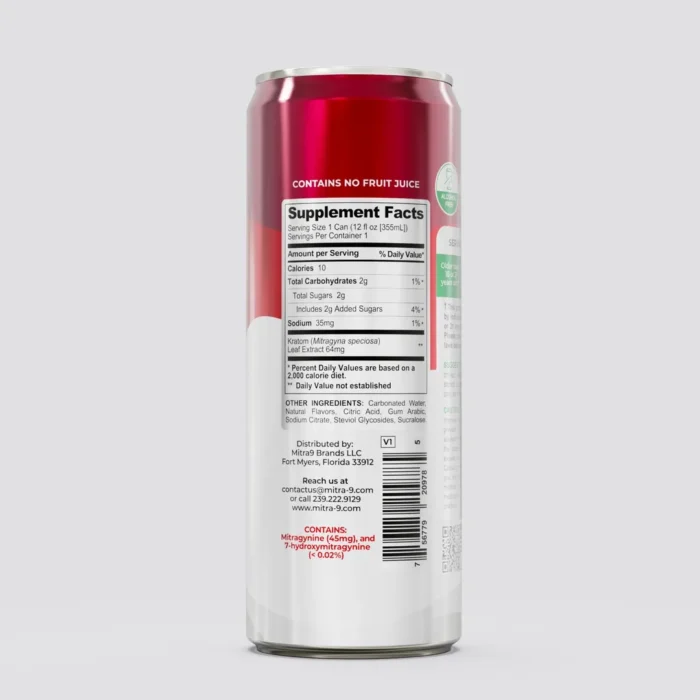 Carbonated Water; Natural Watermelon Flavors; Citric Acid; Gum Arabic; Mitragyna Speciosa (Kratom) Extract; Sodium Citrate; Cane Sugar; Stevia