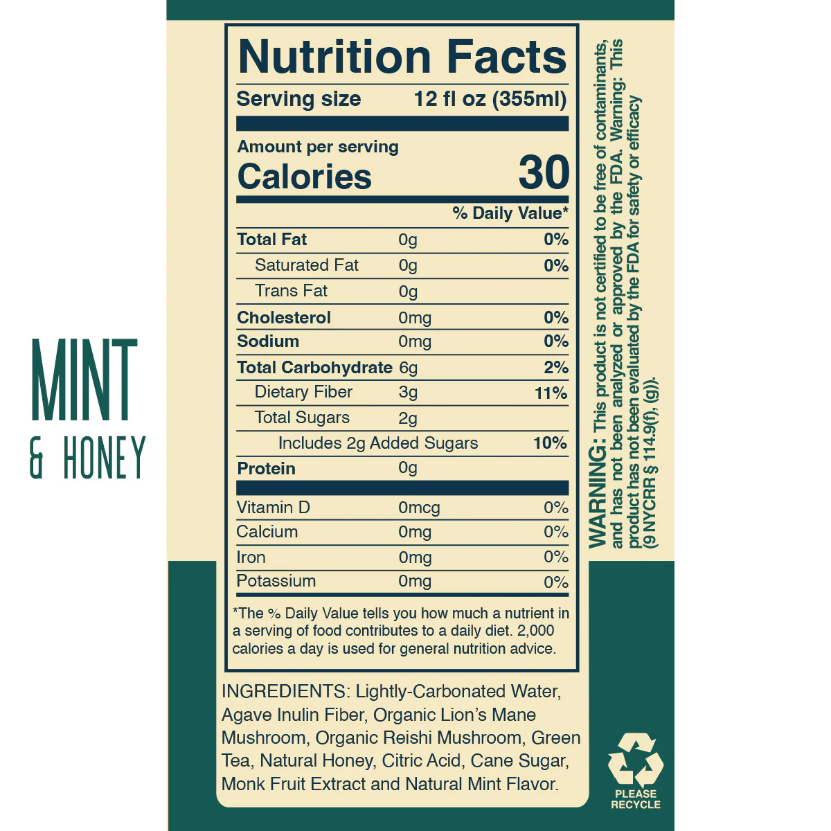 Water, cane sugar, agave inulin, green tea, natural flavors, honey, citric acid, monk fruit extract