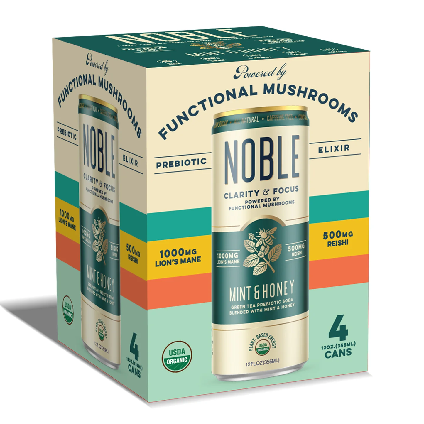 Noble Elixirs Mint & Honey Functional Mushroom Elixir blends refreshing mint with rich honey sweetness for a crisp and invigorating beverage experience. The cool herb and warm sweet notes come together for a flavor that’s both lively and balanced.