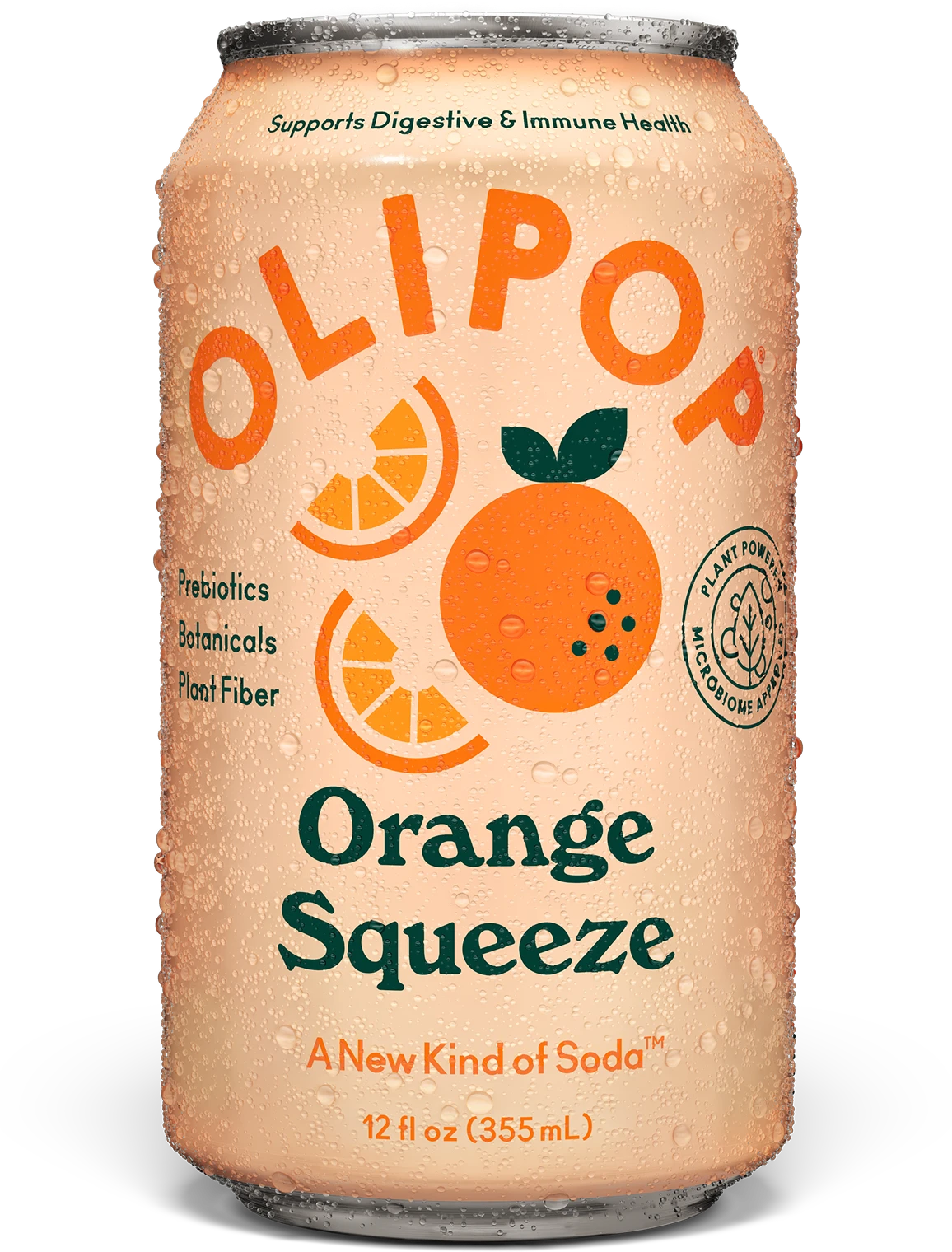 Olipop Orange Squeeze Sparkling Prebiotic Soda delivers a bright and refreshing citrus flavor inspired by classic orange soda. It blends juicy notes of mandarin, clementine, and lemon for a smooth and uplifting taste with light carbonation.