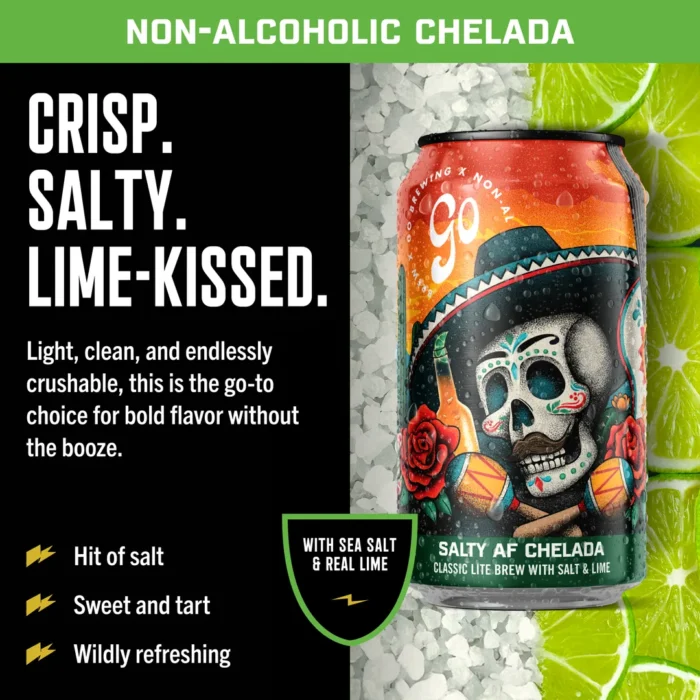 Originally crafted as a bold experiment in our beta brew series, the Salty AF Chelada with Lime made its mark as a standout sensation, quickly ascending to become a seasonal one-batch wonder. After its debut last year, this audacious blend of perfect saltiness and vibrant lime won over the hearts of beer enthusiasts, securing its place as a much-anticipated annual release. Each limited edition batch captures the spirit of innovation and adventure that our brewery champions, offering a unique, non-alcoholic experience that is eagerly awaited and celebrated as a seasonal highlight. As the year rolls round to its special release time, fans old and new line up to savor this fleeting gem, making each sip a cherished event in the beer lover’s calendar.